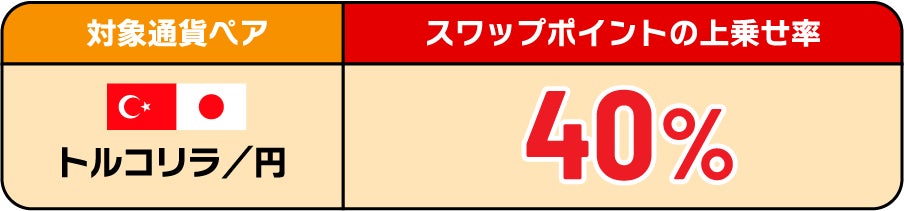 インヴァスト証券株式会社(本社:東京都港区、代表取締役社長:伊藤 誠規、以下「当社」)は、外国為替取引サービス「トライオートFX」において、トルコリラ円(TRY/JPY)の新規買建玉を対象に、期間中の“建玉増加分”に対してスワップポイントを40%上乗せしてキャッシュバックする「トルコリラ/円 スワップポイント上乗せキャンペーン」を2025年10月1日〜10月31日まで実施します。上乗せ対象となる買建玉数量の上限は300万通貨です。