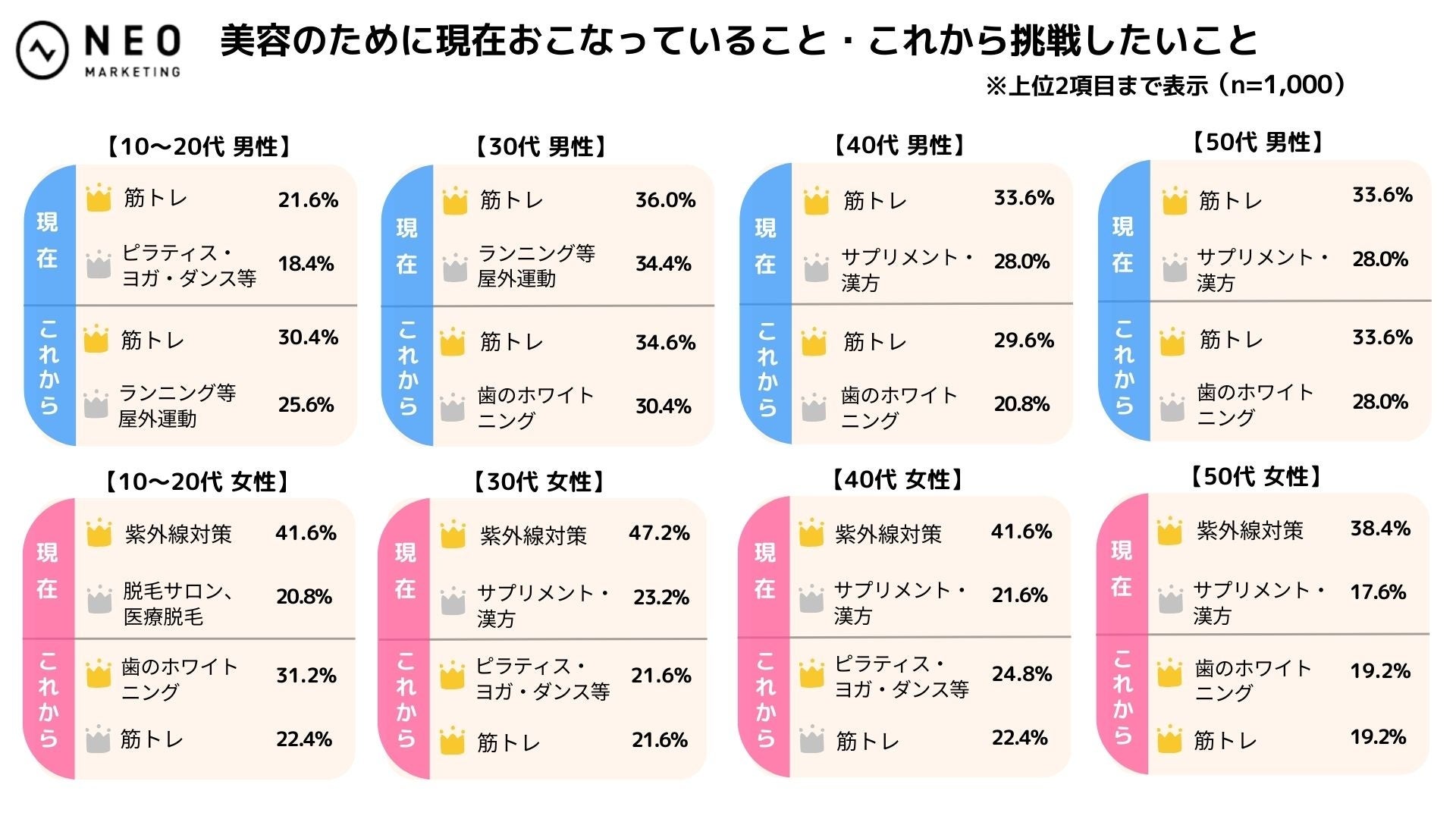 ■美容のために現在おこなっている事と、これから挑戦したい事(n=1,000)