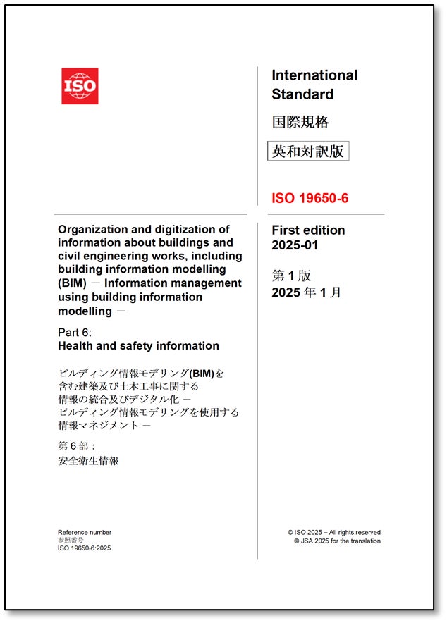 一般財団法人日本規格協会(本部:東京都港区、理事長:朝日弘)は、2025年6月2日(月)に「ISO 19650-6:2025ビルディング情報モデリング(BIM)を含む建築及び土木工事に関する情報の統合及びデジタル化-ビルディング情報モデリングを使用する情報マネジメント-第6部:安全衛生情報」の邦訳(英・日対訳版)を発行いたしました。