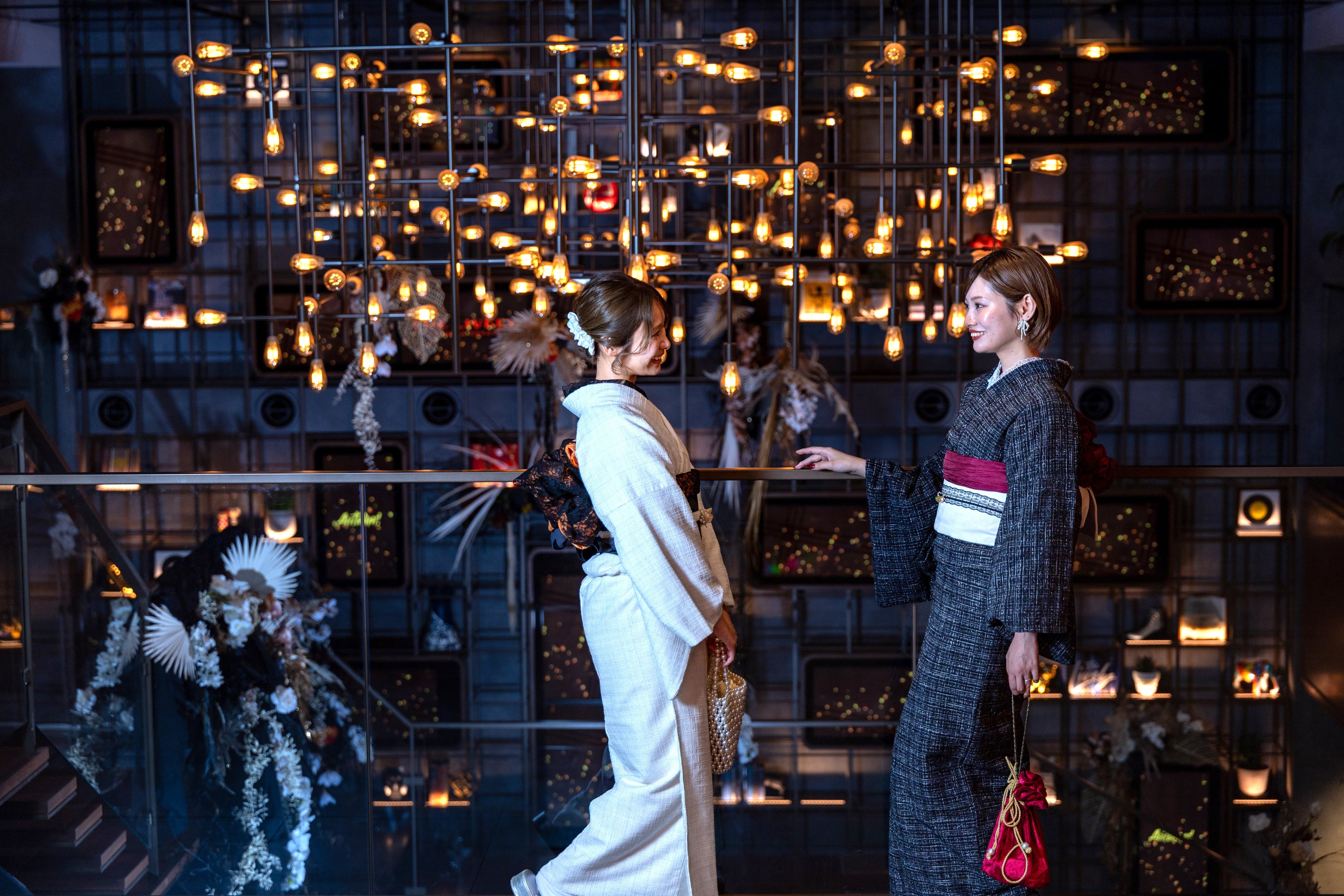 宿泊者以外も歓迎の展示開催。フォトジェニックな着物レンタル付き宿泊プランも。