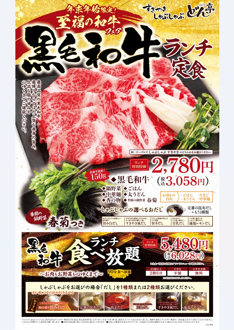 「しゃぶしゃぶどん亭」『至福の和牛フェア』~晴やぐ席に極上のひと皿を~ 年末年始の期間限定で販売開始!