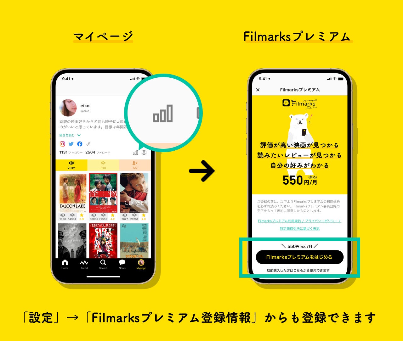 新作・旧作に関わらず、面白い作品を探したい、名作レビューに出会いたい、記録した鑑賞データをもっと楽しく見たいという皆さまに向けて、映画やドラマ鑑賞をより快適に楽しんで頂ける機能や限定グッズプレゼントの機会をご提供する月額550円/税込の会員サービスです。