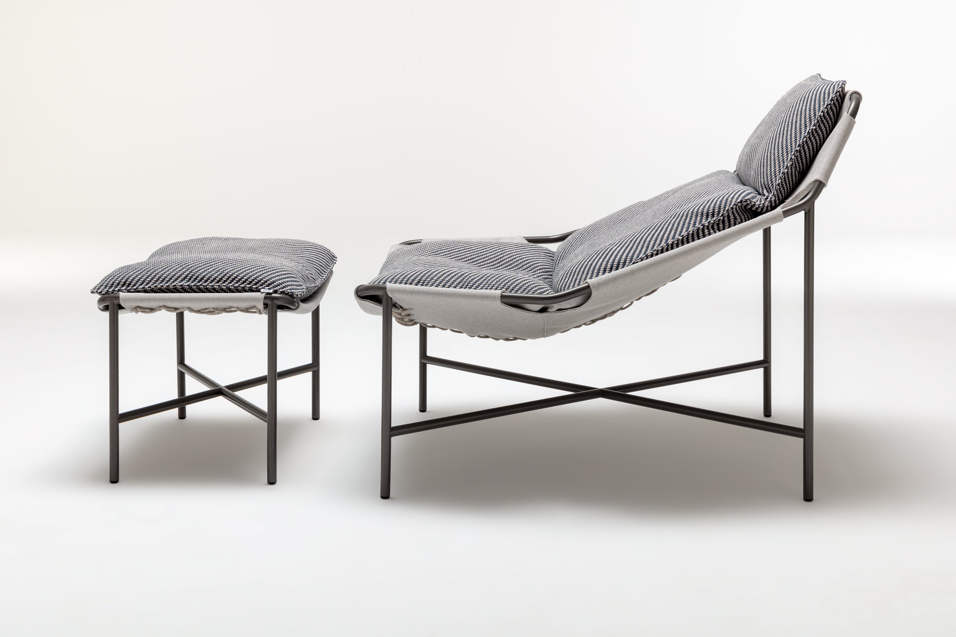 今回のアウトドア仕様の「JACKOUT」は、身体をやさしく包み込み、ハンモックのような浮遊感のある極上の座り心地はそのままに、粉体塗装されたステンレススチールフレームと撥水加工を施したクッションで屋外でも快適にお使いいただけます。さらに、お揃いのスツールを使用することで、足を乗せてゆったりとリラックスして深く座ることができ、パーソナルなひとときを過ごすことができます。