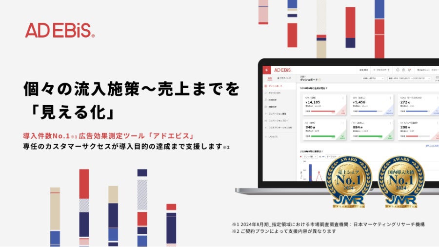 アドエビスは、導入実績11,000件を誇る広告効果測定プラットフォームです。近年の3rd Party Cookie規制に対応し、1st Party Cookieを活用した高精度な計測を実現しています。Webサイトへの流入からコンバージョン、さらには売上までを可視化することで、真の広告効果を把握し、費用対効果の改善に貢献します。