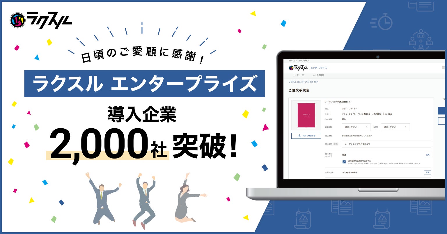 法人向け印刷販促管理サービス「ラクスル エンタープライズ」にて、導入社数が2,000社を突破