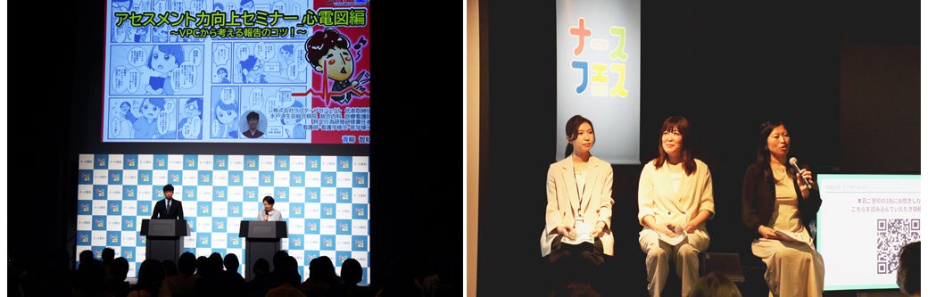 看護師のキャリアやスキルアップに繋がる基調講演、タレントや協賛企業による特別セミナーを開催しました。基調講演では起業家看護師が語るキャリアセミナーや、心電図の読み方講座、感染管理認定看護師が語るコロナ最前線でのエピソードなど、看護の仕事を改めて見つめ直す機会となる内容が多く、事前登録のチケットはいずれも満席となりました。