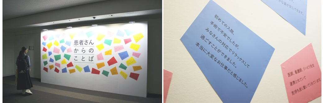 また、会場内には「患者さんからのことば」として、これまで看護師・看護学生にお世話になった方々の感謝のコメントが散りばめられたボードも掲示され、多くの来場者が足を止めて眺める姿が印象的でした。
