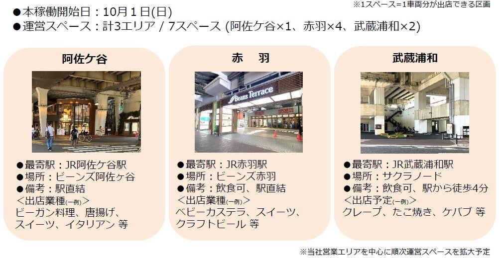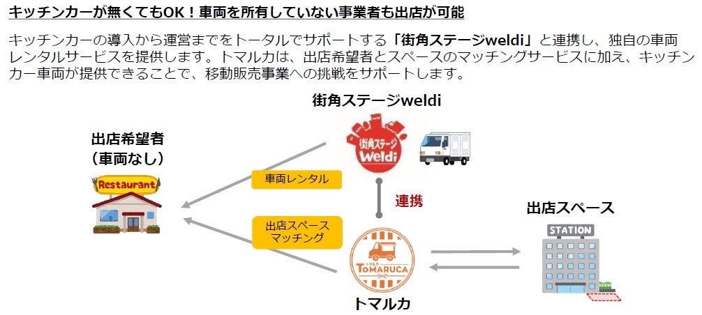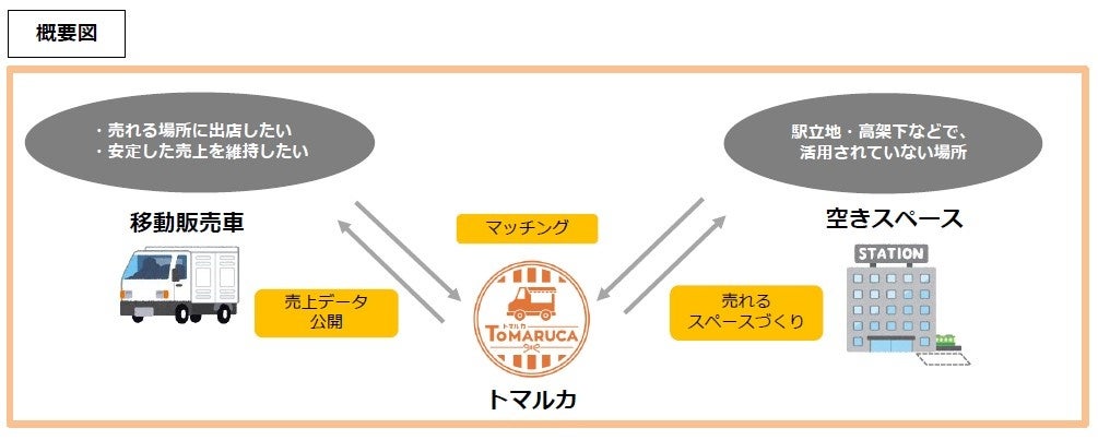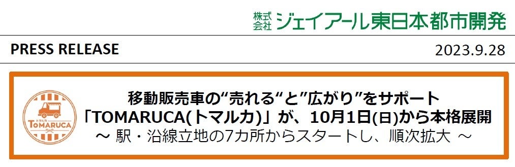 株式会社ジェイアール東日本都市開発は、キッチンカーなどの移動販売車と駅ビル・高架下に点在する空きスペースをマッチングするプラットフォーム事業「TOMARUCA(以下:トマルカ)」を約1年間の実証実験を経て、2023年10月1日(日)より、本格展開します。