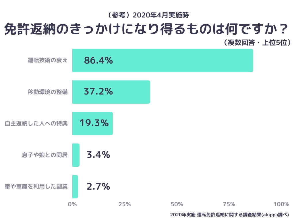 駐車場予約アプリ「akippa(あきっぱ)」を運営するakippa株式会社(代表取締役社長 CEO:金谷元気)は、akippaを利用しているユーザーに「運転免許返納」に関するアンケート調査を実施いたしました。