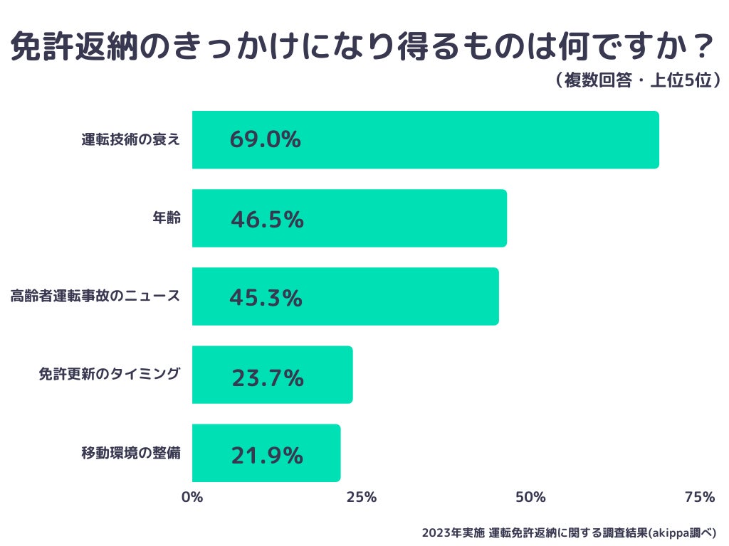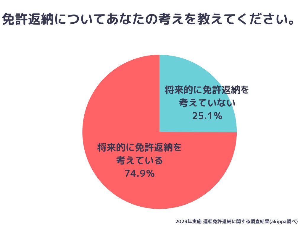 約75%のドライバーが「将来的に運転免許の返納を考えている」【運転免許返納に関する調査結果/akippa調査】