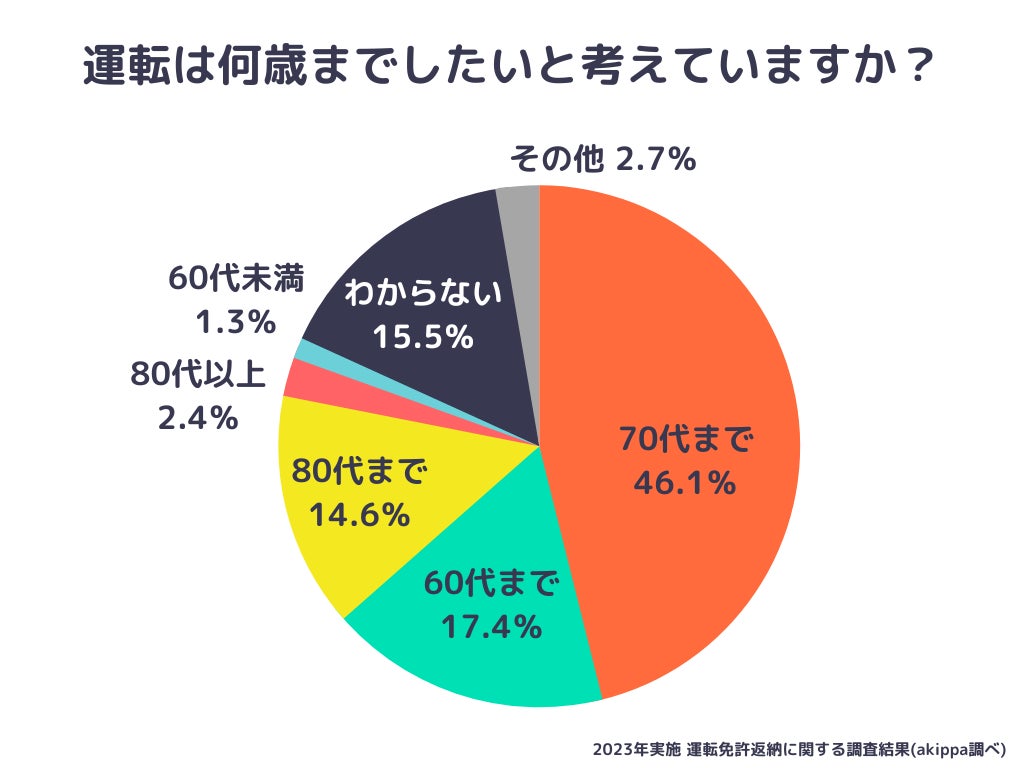 ・車やバイクの運転をしたいのは「70代まで」の回答が最も多く46.1%