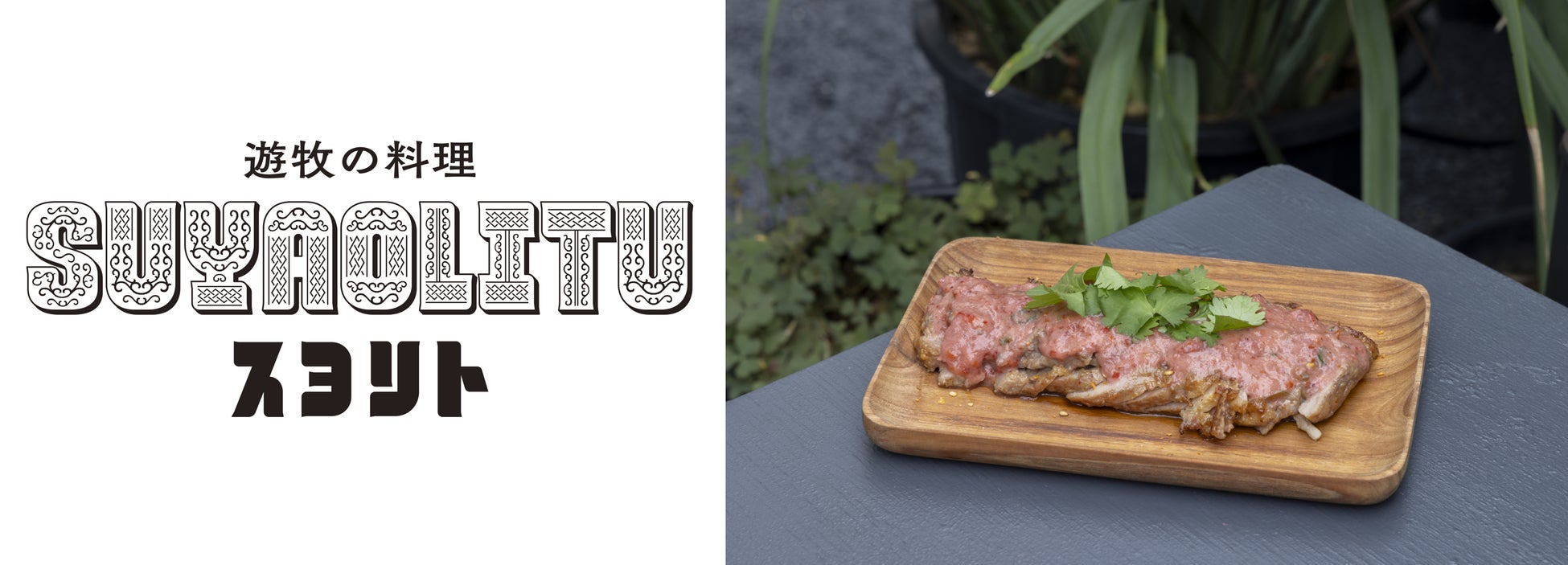 ミキサーでペーストにしたいちごさん、ヨーグルト、そしてスヨリト自家製のトウガラシとトマトのタレでつくったホットソース。炭火でグリルしたラムの肩ロース肉にかけてお召し上がりいただきます。