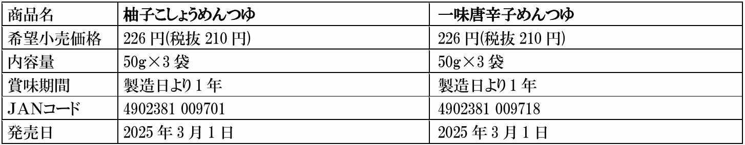 辛さの中にだしのうま味で涼味際立つ 和の香辛料 × かつお節だし「柚子こしょうめんつゆ」「一味唐辛子めんつゆ」 個食パッケージで1人前から愉しめる 2025年3月1日新発売