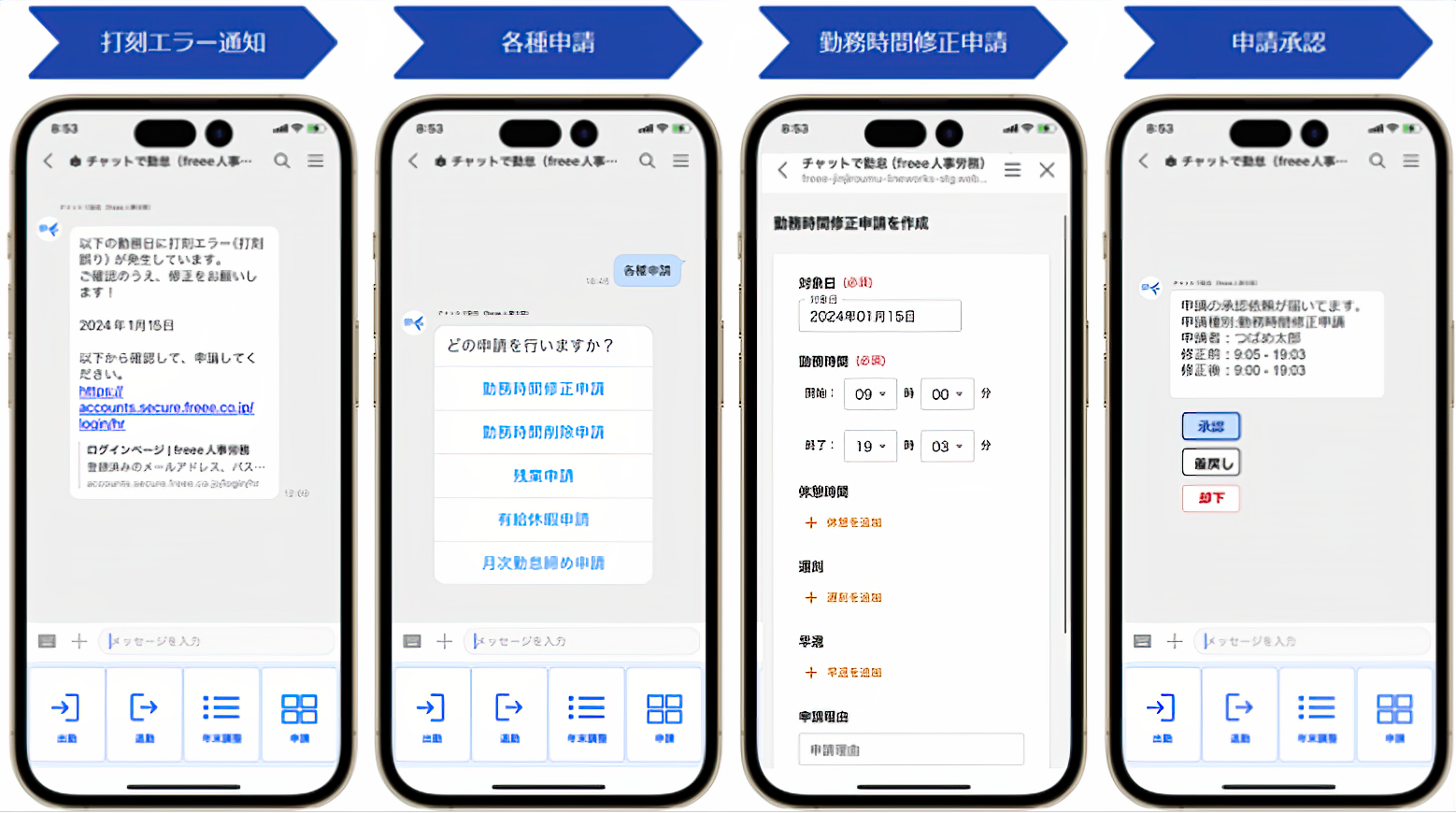 LINE WORKSとfreee人事労務の連携アプリ「チャットで勤怠(freee人事労務)」に申請承認機能が登場!2024年問題などを背景に、現場でも使いやすいデジタルツールで労務業務を効率化