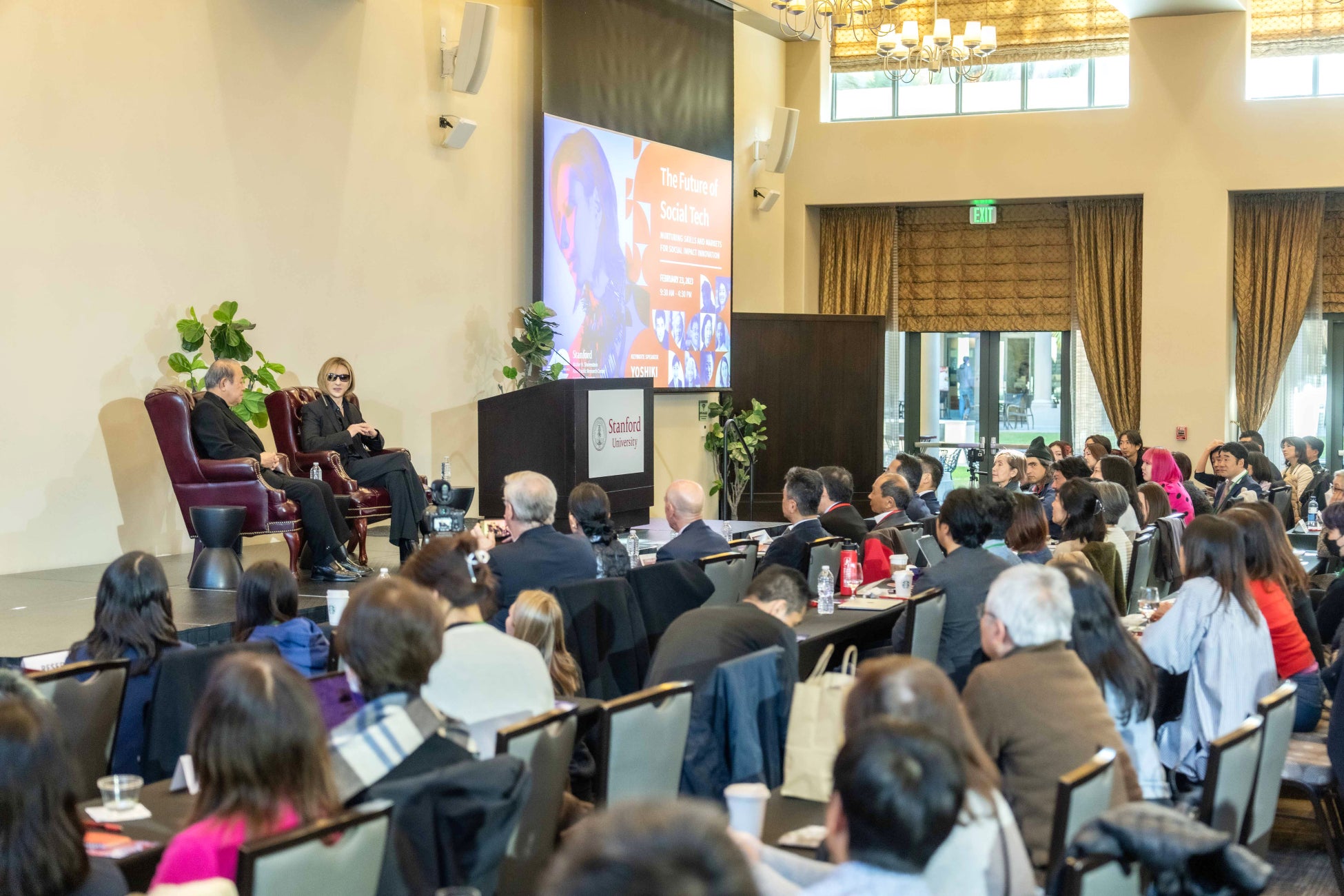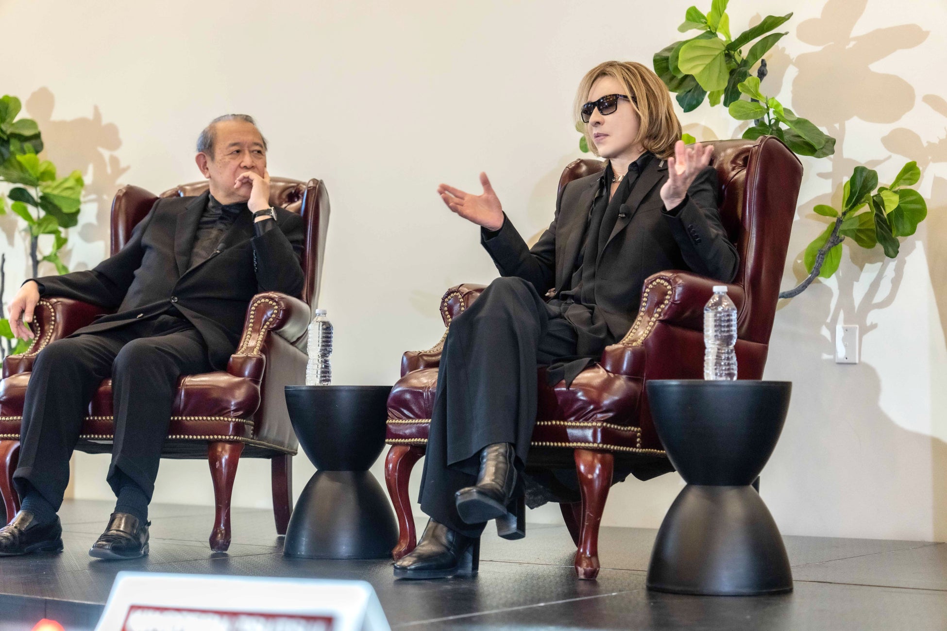 今回YOSHIKIは、「世界のエンターテインメントとソーシャルテックの未来:グローバルに挑戦する」をテーマとした特別講演で、外務省北米局局長や在アメリカ合衆国日本大使を過去に務め、現在は日米協会の会長である藤崎一郎氏からの質問を受け、全編英語で講演を実施。