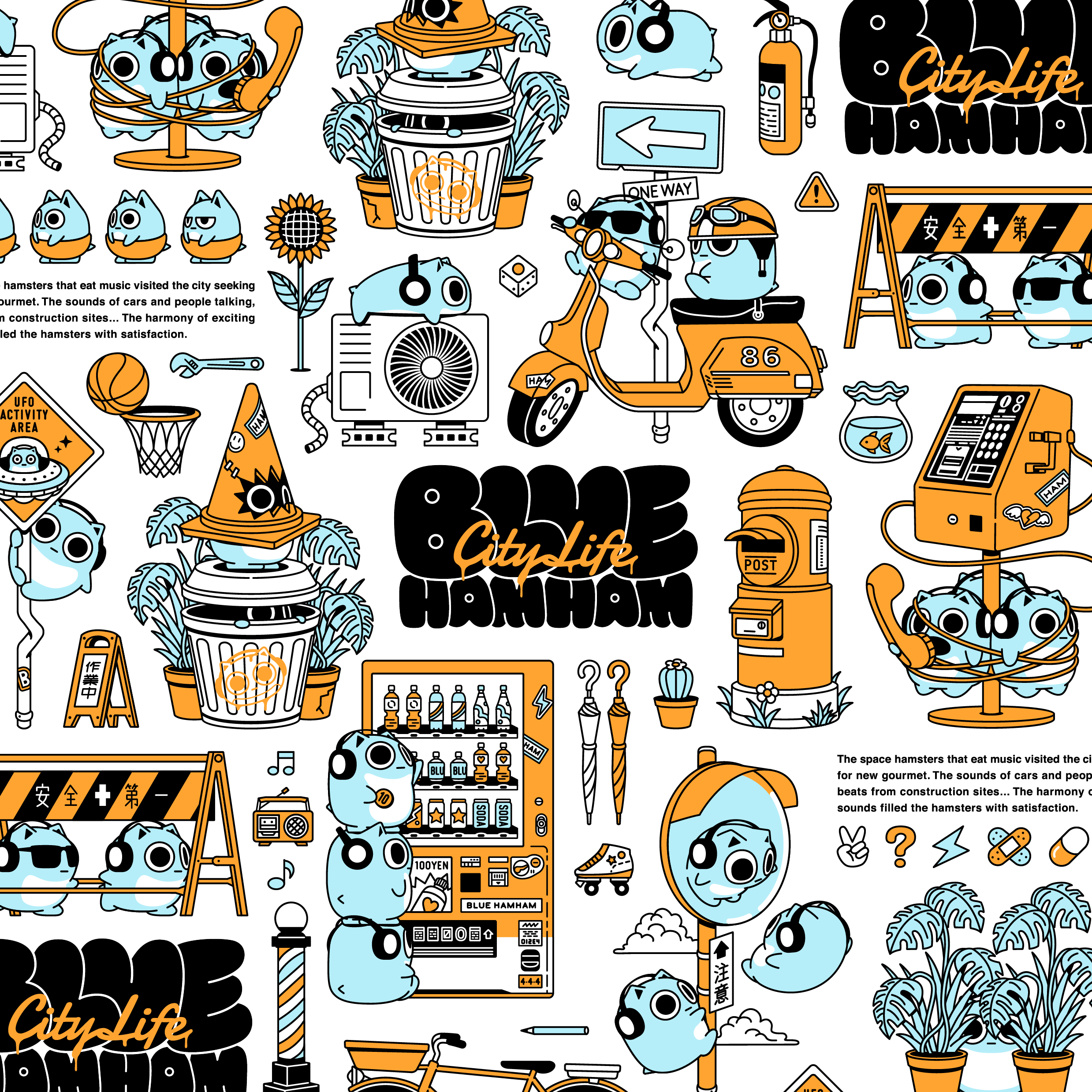音を食べて生きている"宇宙ハムスター"、ブルーハムハム。不運なことに地球旅行の途中で迷子になり、地球人に拾われる。人間社会のさまざまな音を食べて、その美味しさに驚愕。地球上のいろんな音楽を味わうことが夢に。