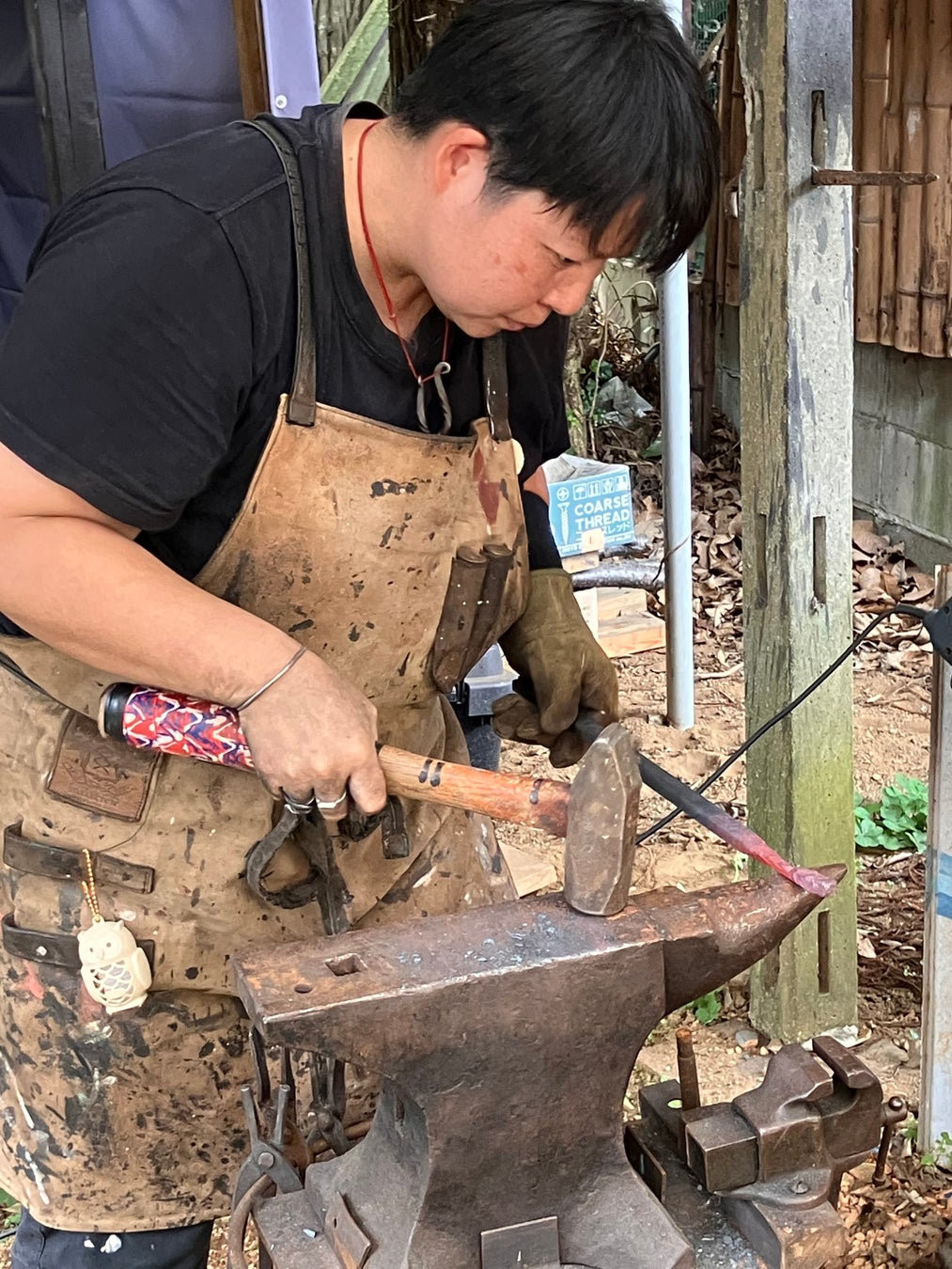 渡英後、ロンドンのカンバーウェルカレッジオブアーツに入学。2018年より八千代市の黒沢池のたたら祭実行委員に参加し、鍛冶の実演を行っている。