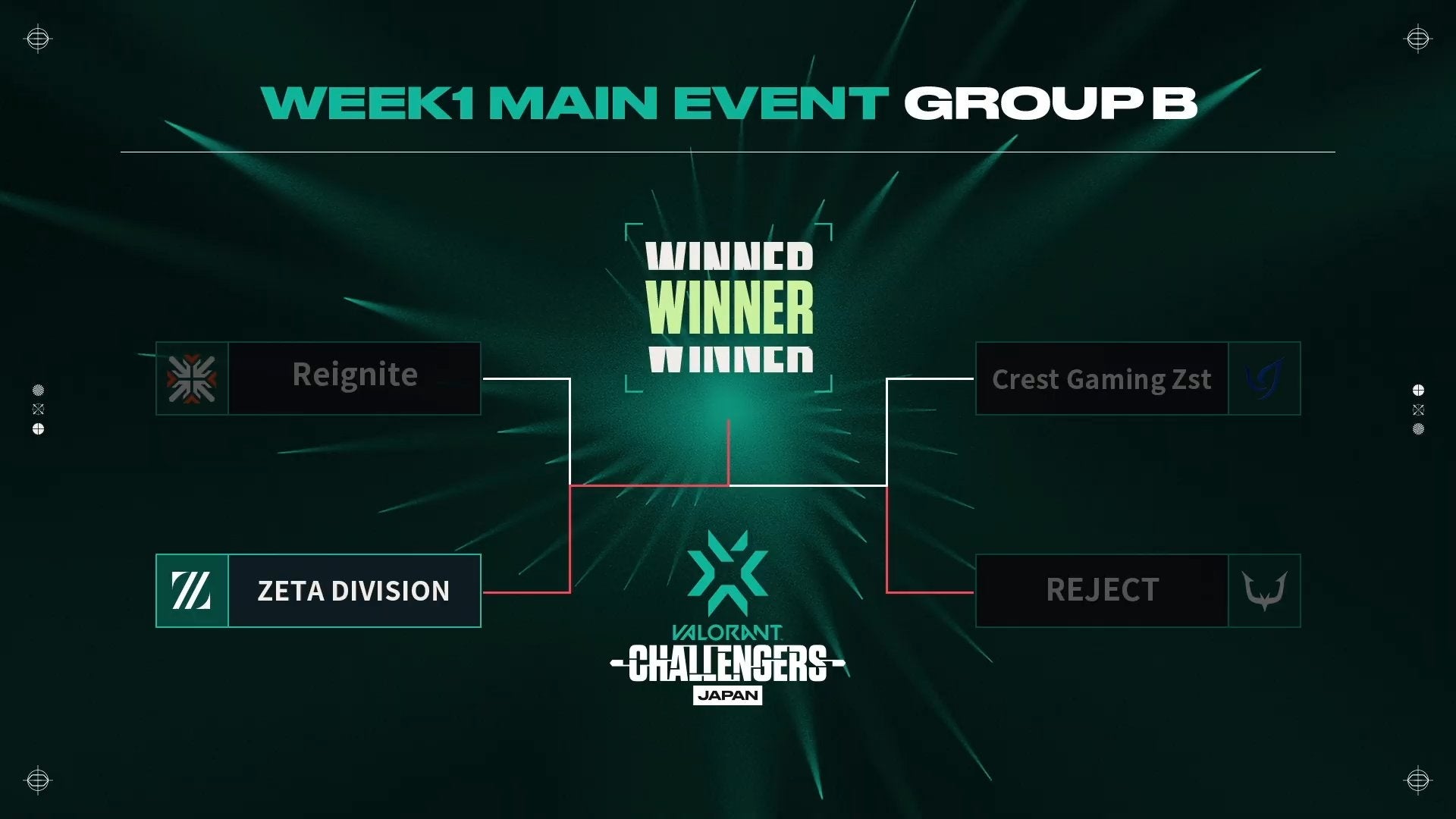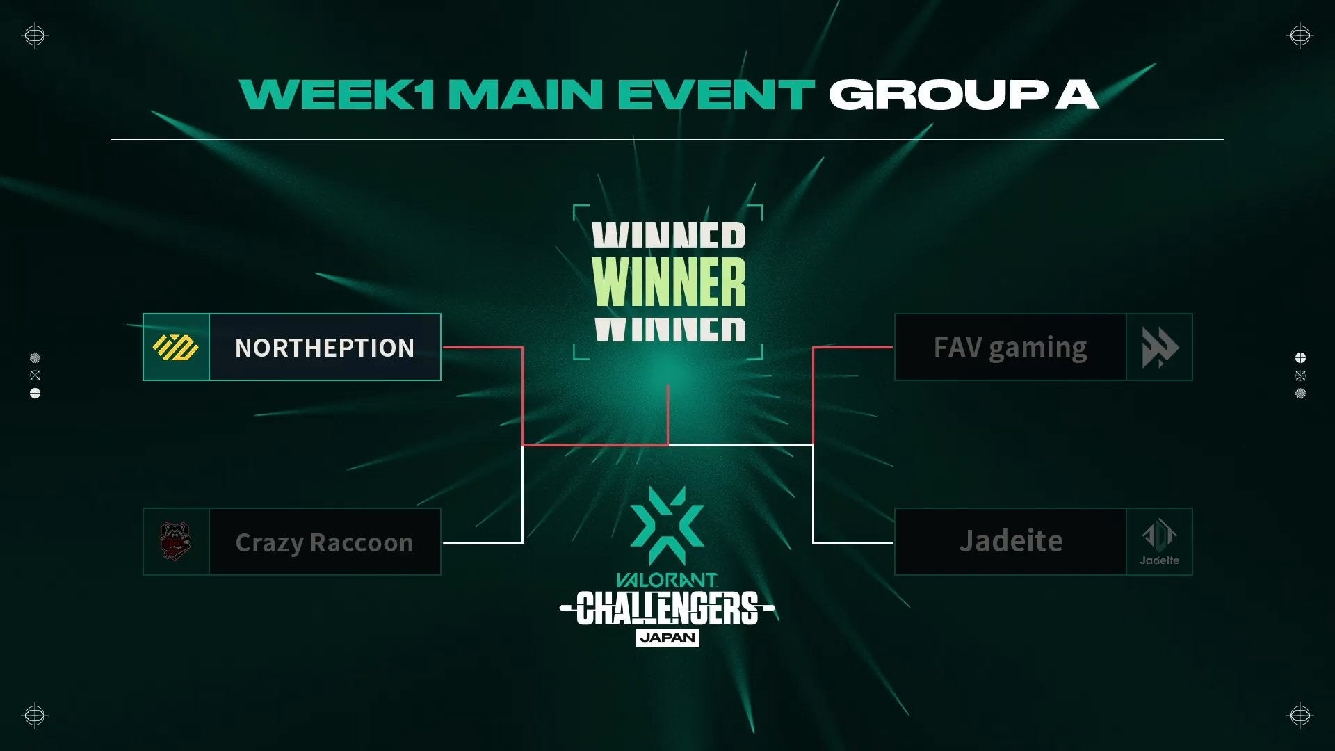 『2022 VALORANT Champions Tour Challengers Japan』を主催する合同会社ライアットゲームズと、大会を運営するRAGE(株式会社CyberZ、エイベックス・エンタテインメント株式会社、株式会社テレビ朝日)は、PlayoffsをかけたWEEK1 Main Eventを5月21日(土)、22日(日)に開催いたしました。全試合の結果、NORTHEPTION、FAV gaming、ZETA DIVISION、REJECTの4チームがPlayoffsに進出することが決定しました。