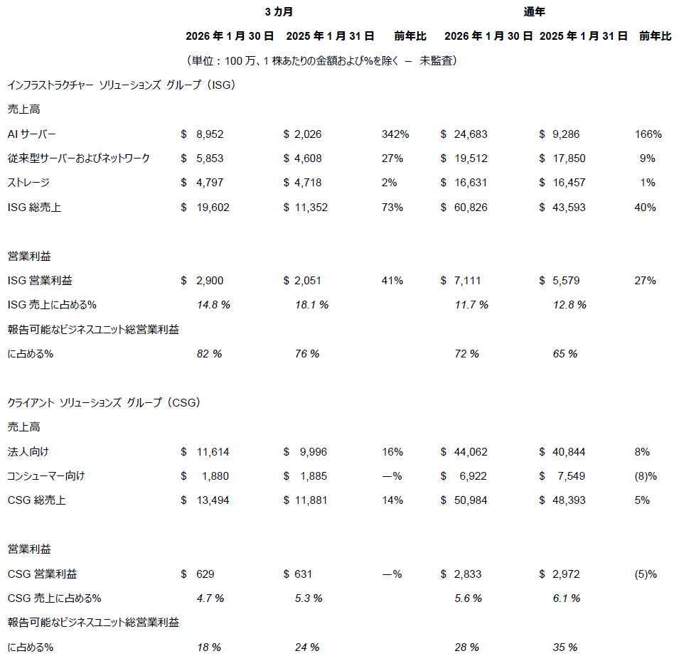 デル・テクノロジーズは、2026会計年度(2025年2月~2026年1月)の第4四半期(2025年11月~2026年1月)および通年の業績を発表しました。さらに、同社は2027会計年度の第1四半期(2026年2月~2026年4月)および通年(2026年2月~2027年1月)のガイダンスも発表しました。