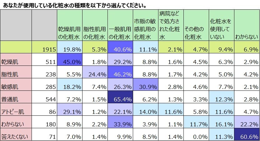 普通肌の人の「一般用の化粧水」使用者は約7割、乾燥肌の人の「乾燥肌用化粧水」使用者は約5割。