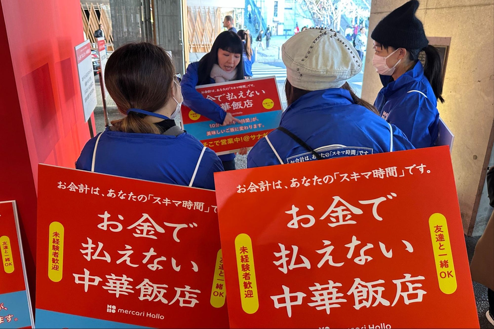 株式会社メルカリ(以下、メルカリ)が提供する、スキマバイトサービス「メルカリ ハロ」は、年末シーズンに向けてスキマバイトを多くの方に知っていただくことを目的に気軽にスキマバイト体験ができる没入型施設「お金で払えない中華飯店」(※2)を、2024年12月5日(木)から12月8日(日)の4日間限定で、サナギ 新宿にて開催いたしました。