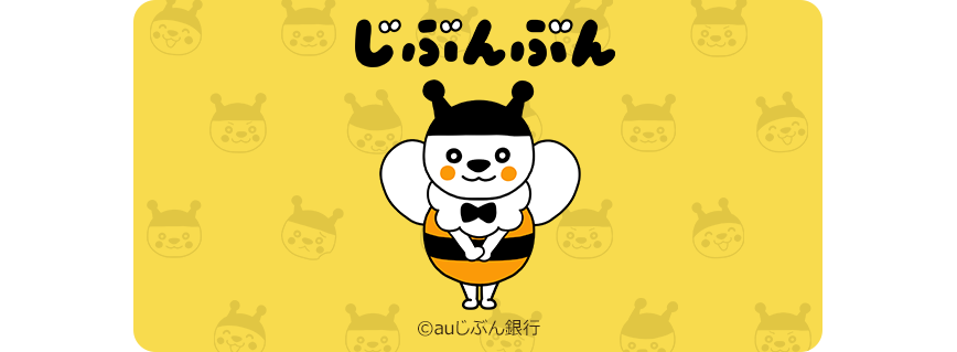 ハチは巣の中にたっぷり蜜を蓄えることから、金運アップや幸運の象徴とも言われています。その縁起のよさから、公式キャラクターがお客さまに幸運を届ける存在になればと思い、ハチをモチーフにしたデザインに決定しました。丸いフォルムと愛らしい表情が特徴で、ぶんぶん飛ぶハチの羽音と、auじぶん銀行の行名をかけて「じぶんぶん」と命名しました。