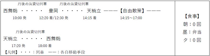 当日は、『丹後の海』を貸し切り、普段は運行しない特別コースを運行するほか、丹後名物ばら寿司の提供や天橋立観光、さらには鉄道好きタレント「斉藤雪乃さん」によるトークなどを実施します。ぜひ、この日しか味わえない『丹後の海』での旅をお楽しみください!