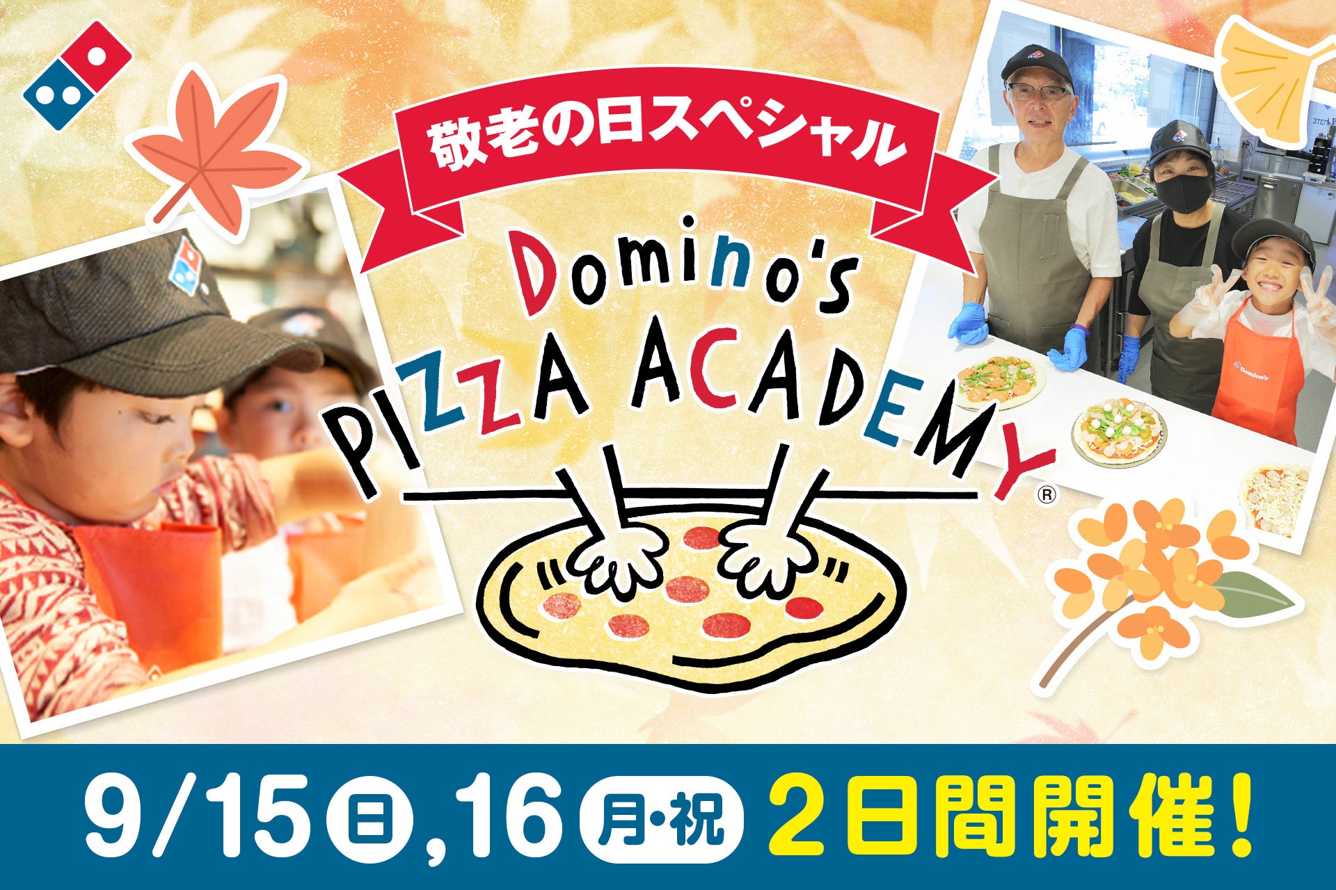 株式会社ドミノ・ピザ ジャパン(代表取締役:ジョシュア・キリムニック、CEO:マーティン・スティーンクス、本社:東京都品川区、以下:ドミノ・ピザ)が展開する国内No.1シェアを誇る宅配ピザチェーン ドミノ・ピザは、9月16日の「敬老の日」に合わせ、 2024年9月15日(日)・ 16日(月・祝)の2日間限定で「ピザアカデミー 敬老の日スペシャル」を全国のドミノ・ピザ全店舗*で開催します。期間中、各店舗・各日先着1組様に限り、65歳以上の方を対象に、一緒に参加される方も合わせて最大4名様まで特別価格500円/名(通常2,180円)でピザアカデミーを体験できます。本イベントの開催に伴い、本日9月10日(火)より参加の申し込み受付を開始します。