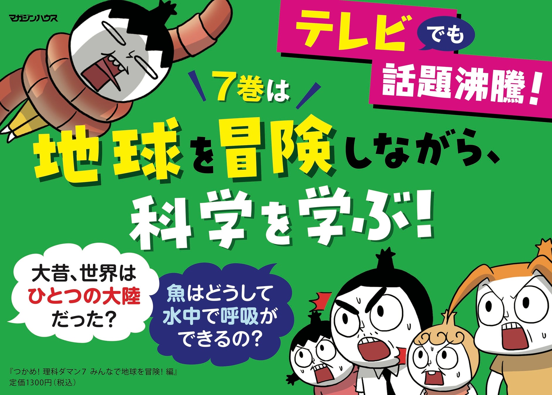 株式会社マガジンハウス(本社:東京都中央区、代表取締役社長:鉄尾周一)から好評発売中の学習まんが『つかめ!理科ダマン』シリーズ(シン・テフン 作 ナ・スンフン 漫画 呉華順 訳/全7巻)が異例の売れ行きにより日本累計100万部を突破したことをお知らせいたします。7月18日には最新刊『つかめ!理科ダマン7 みんなで地球を冒険!編』も発売となりました。