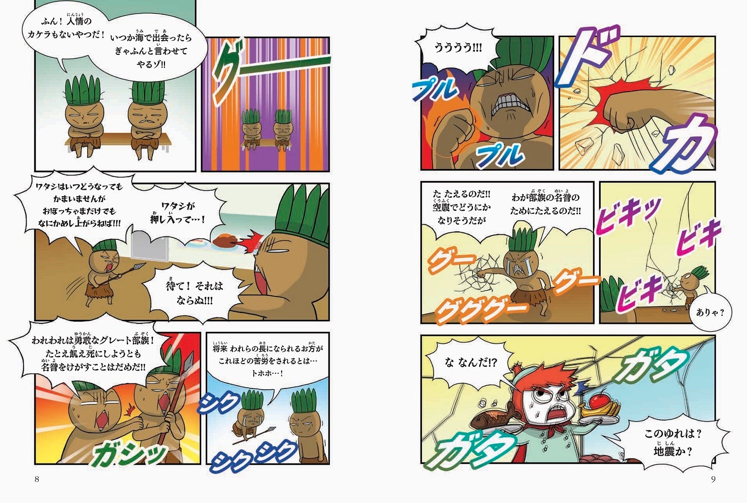 最新刊の7巻では、主人公のシン達家族が冒険へ出発! 地球についてのさまざまなひみつを学びながら、海や砂漠を抜け、黄金の島を目指します。