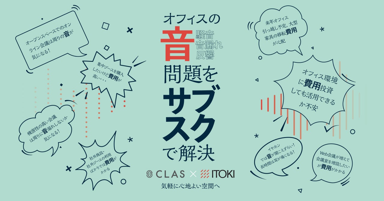 テクノロジーとデザインで実現するイトーキのスマートオフィス商品のラインアップを、CLASのサブスクトライアルメニューに乗せて提供することで、オフィスの音問題を解決する有効なソリューションを、手軽に試すことができるようになります。