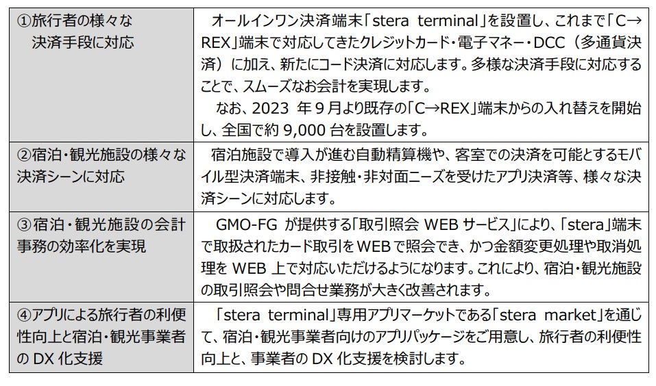 JTBグループ、三井住友カード、GMO-FGは、「stera」 を活用し、今後も先進的なキャッシュレスサービスを通じて、宿泊・観光事業の活性化に貢献してまいります。