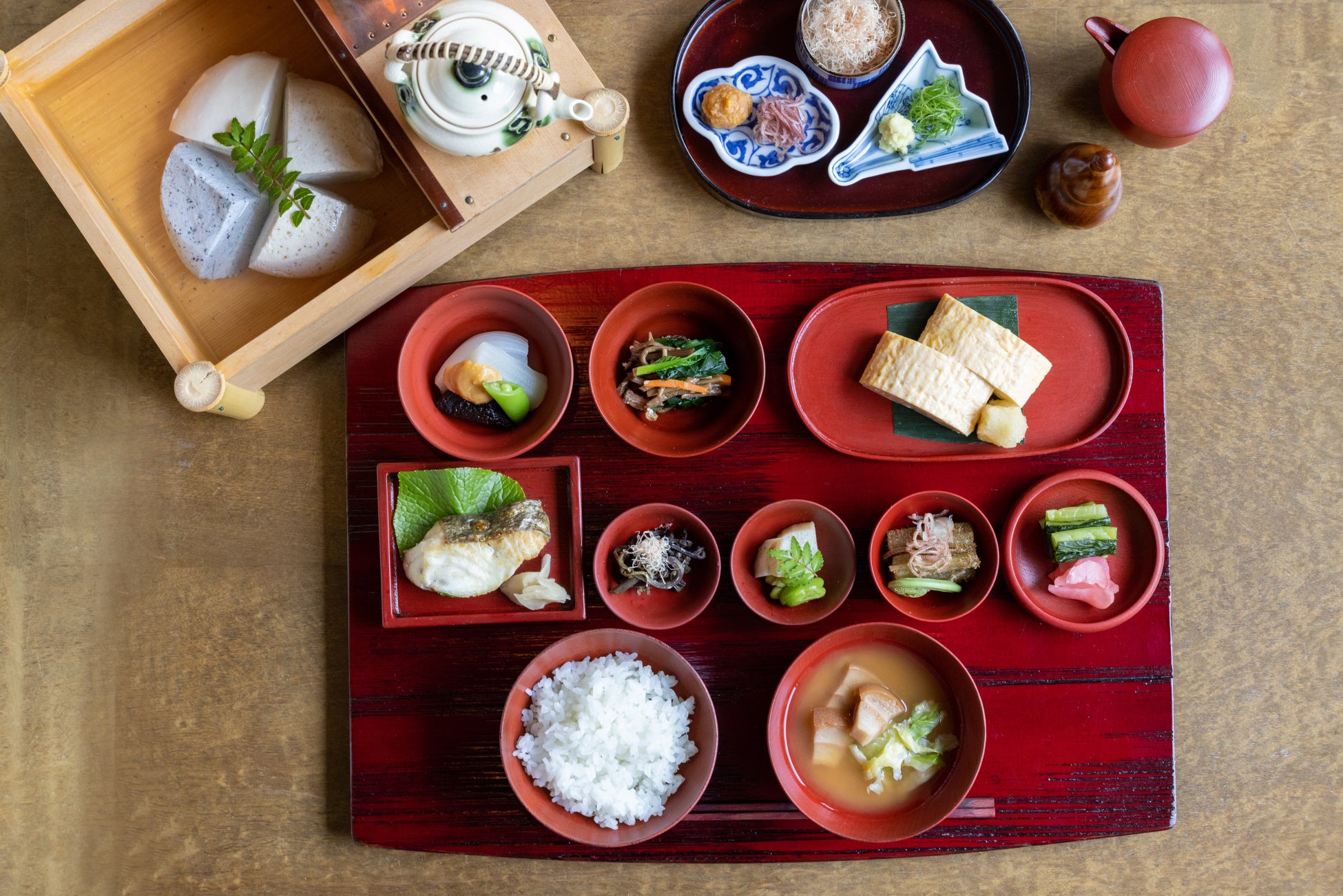 本プログラムでは、胃腸に優しく、心身ともに緩まる特別な朝食を用意します。腸内環境を整える働きをする発酵食品(*1)をふんだんに使用した御膳や、身も心も温まる湯豆腐を味わえる朝食です。湯豆腐は、身体を内側から温める生姜やねぎなどの薬味と共に提供します。自律神経の乱れから減退傾向にある胃腸の働きを、身体の内側からゆっくりと温め整えていくことで、食事を通して、心身の緊張が緩まります。