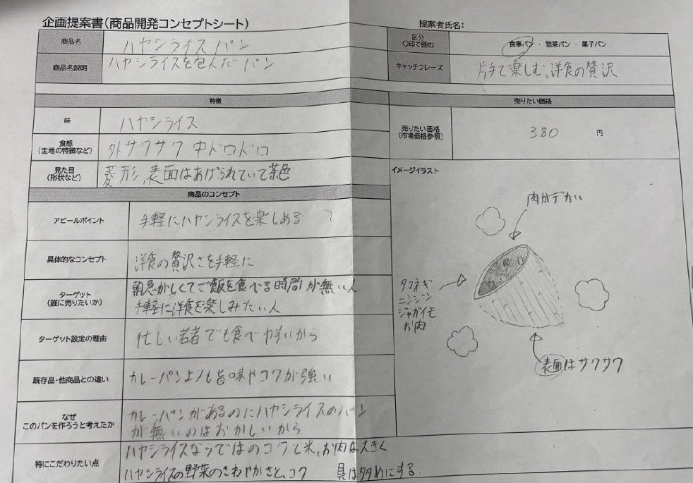 「カレーパンがあるのにハヤシライスパンが無いのはおかしい」「ハヤシライスパンも作りたい!」「洋食を手軽に楽しみたい」という発案者の想いから誕生した一品。