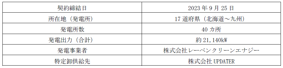 【レーベンクリーンエナジー】株式会社UPDATERとの「特定卸供給に関する契約締結」のお知らせ