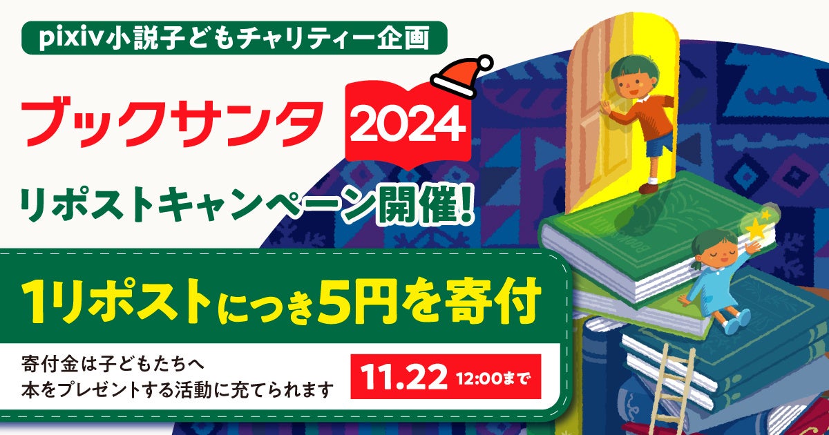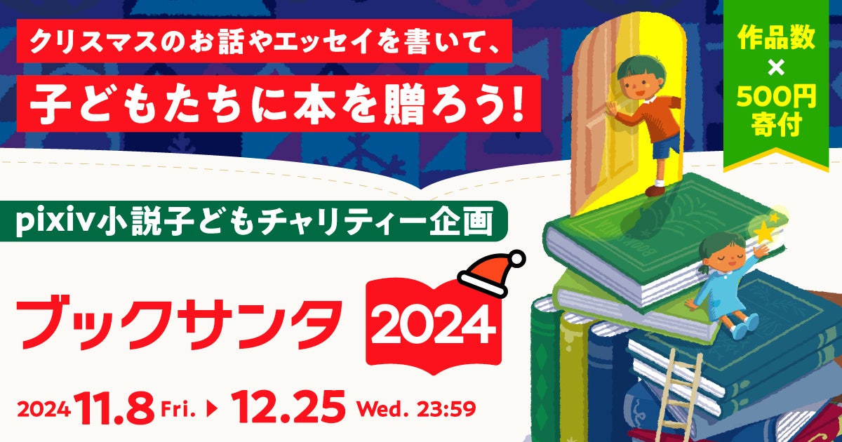 ピクシブ株式会社(本社:東京都渋谷区、代表取締役CEO:丹羽 康弘、以下ピクシブ)は、NPO法人チャリティーサンタ(所在地:東京都千代田区、代表理事:清輔 夏輝)が主催する、子どもたちに本を贈る社会貢献プロジェクト「ブックサンタ」に賛同し「pixiv小説子どもチャリティー企画~ブックサンタ2024~」を開催します。本企画は2022年に開始し、今年で3回目の開催となります。