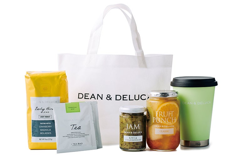 リニューアルオープンに合わせて「ハッピーバッグ」を数量限定でご用意しました。詰め合わせたのは、夏の朝食をたのしむラインナップです。そのまま召しあがっても、ヨーグルトやパンケーキにのせてもよい「クラシックフルーツポンチ」。すっきりとした味わいの「キウイ&シャルドネジャム」。一日の始まりにおすすめのコーヒー「アーリーバード」。爽やかな紅茶の「モロッカンミント」。そして、いつでもお好きな飲み物をおたのしみいただける「サーモタンブラー」です。