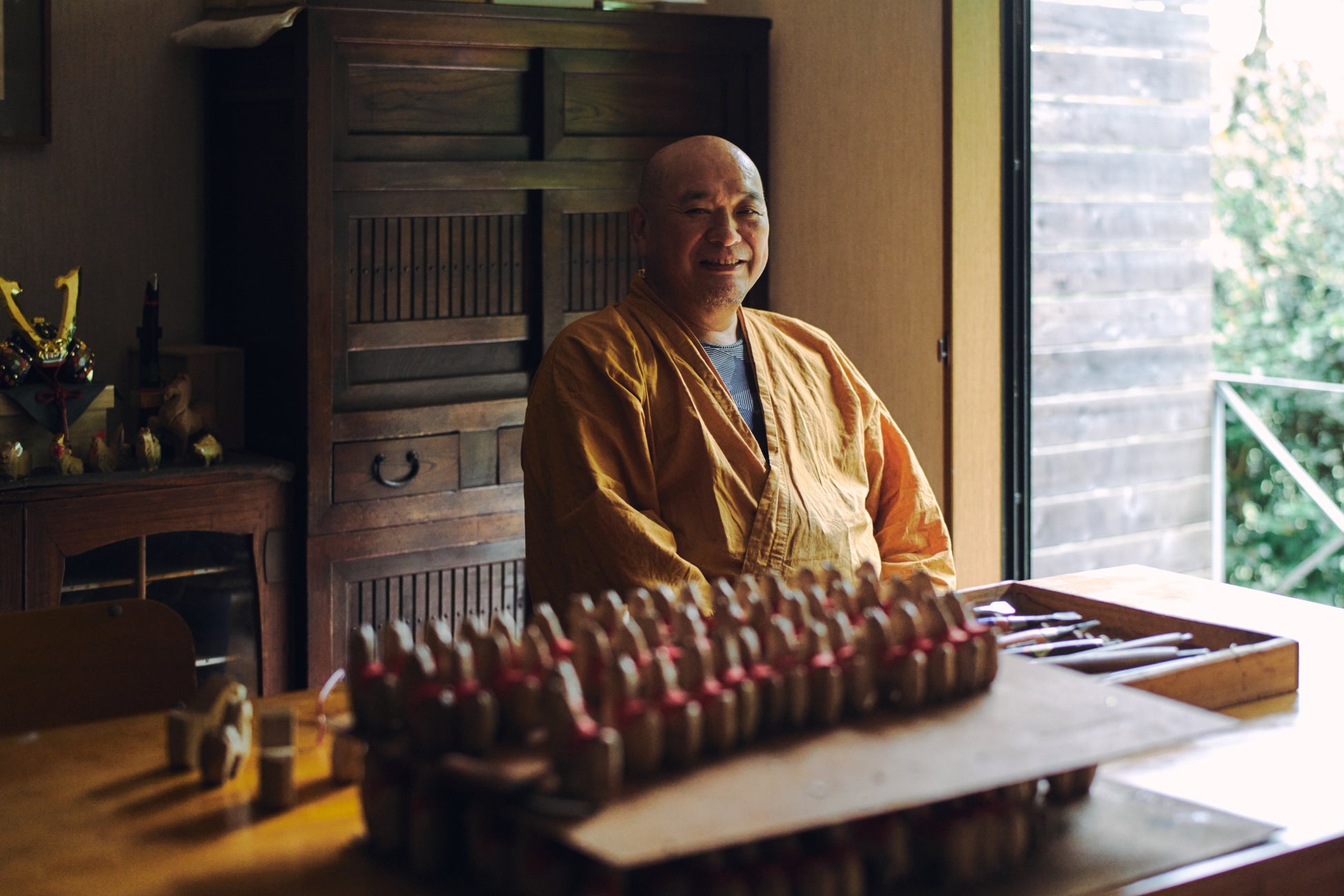 奈良県生駒の自然豊かな土地に工房を構える。45年以上のキャリアを持ち、奈良一刀彫の第一線で活躍。その技術と表現力に高い評価を受け、日本だけでなく海外からも注文が入る。伝統的な技法を継承しつつ、現代の感性にも調和する表現を追求し、木材の風合いや質感を生かした精緻な彫刻により、干支や節句人形、能彫など多様な作品を制作している。