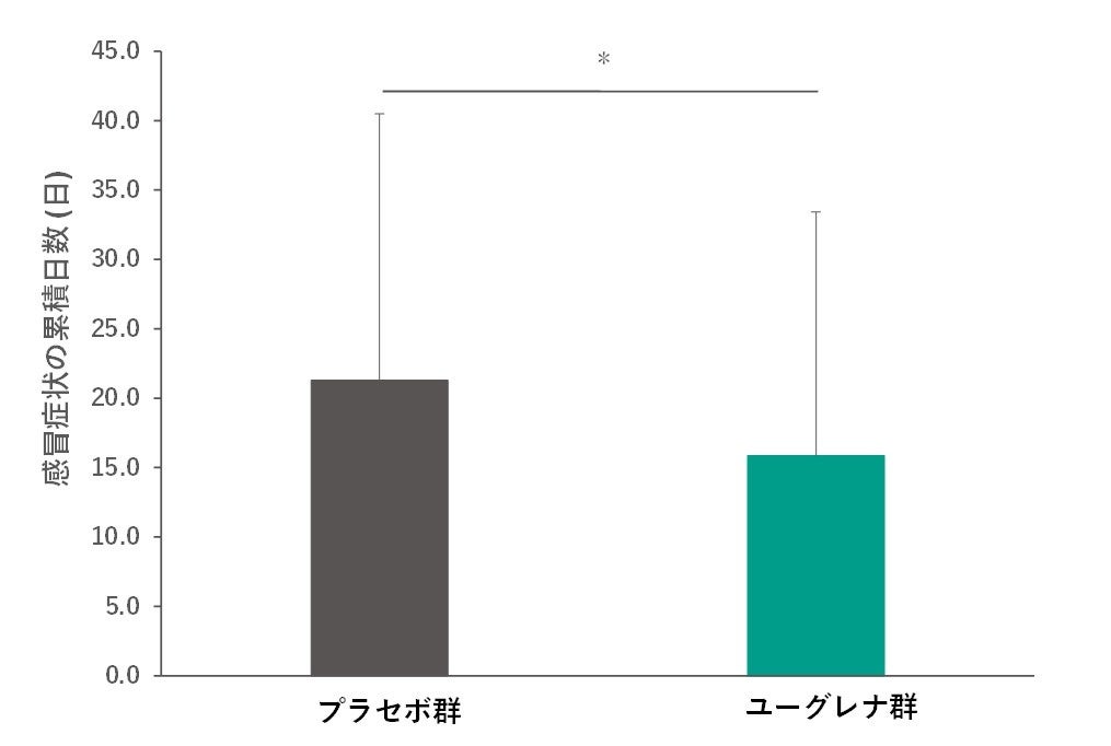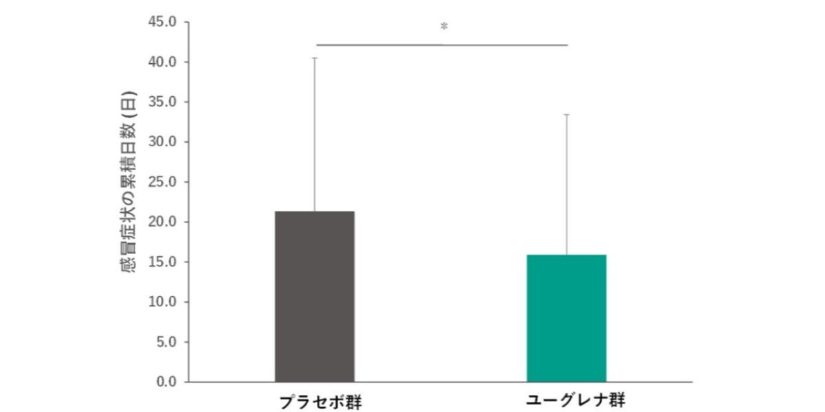 ユーグレナの継続的な摂取が、免疫の維持や調整を介して、感冒症状(かぜ様症状)の発生を抑制することが示唆されました