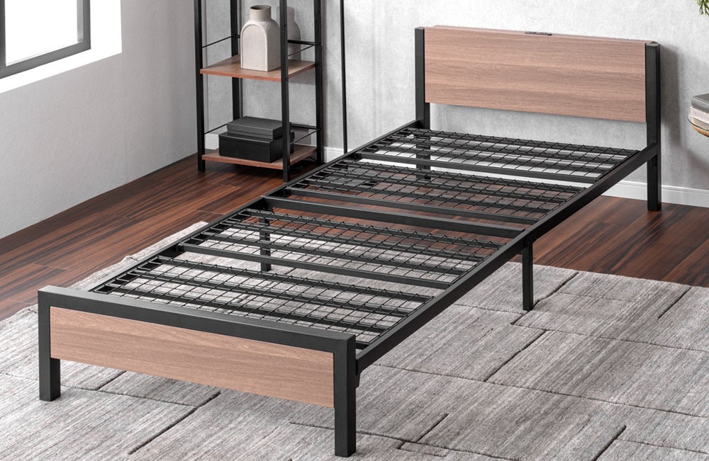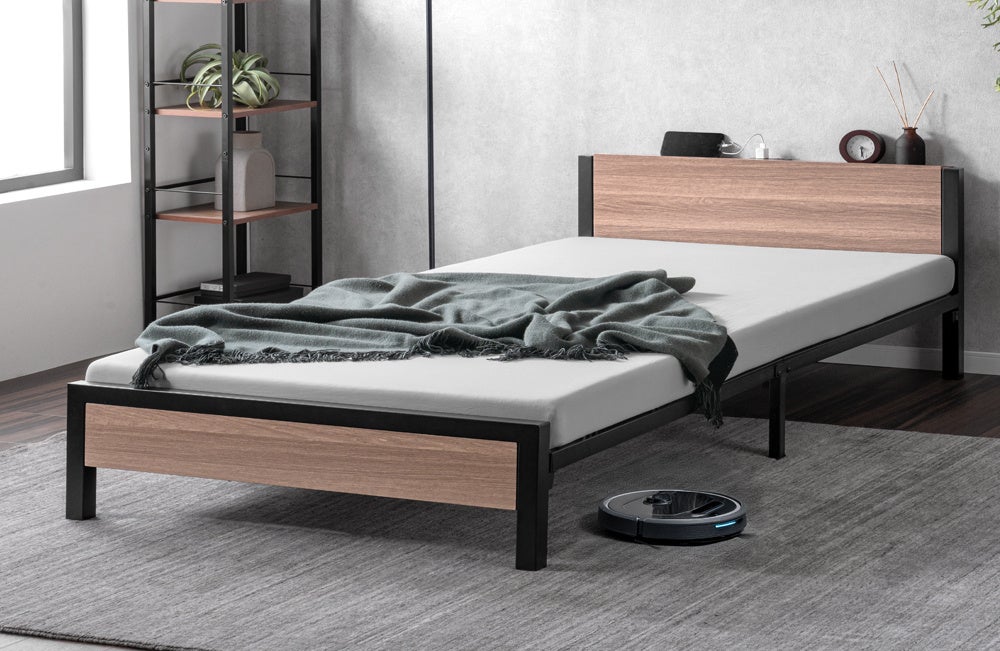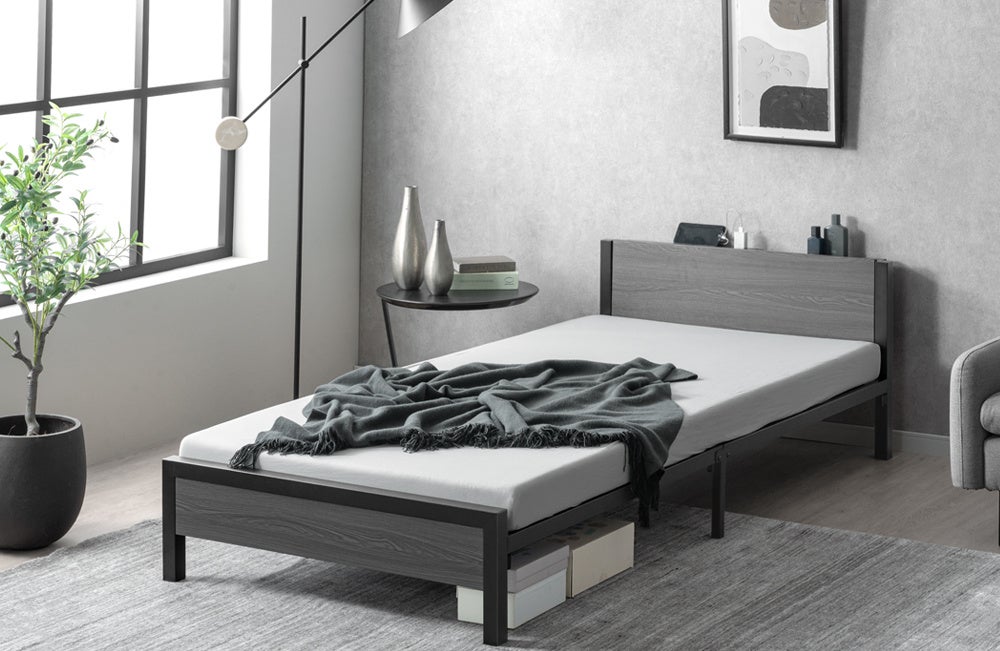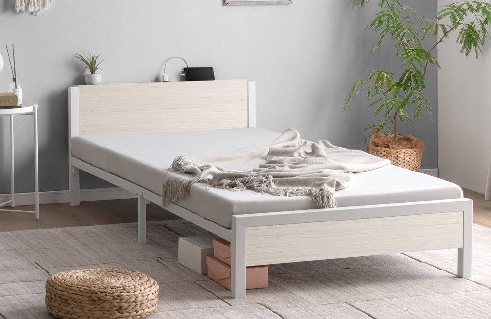 工具不要、パーツを差し込むだけの“超スピード組立” 耐荷重300kgの頑丈設計×宮棚付き“スチールベッド”