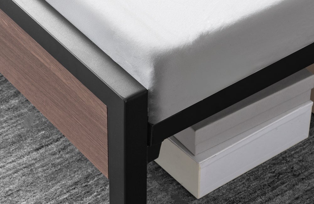 シンプルなデザインながら細部までこだわり、フッドボードはストッパー構造になっているのでマットレスが下にずれることを抑制してくれます。またスチール素材のフレームになっているので床を傷つけにくい、傷防止キャップも取り付けているのでより安心してご使用いただけます。