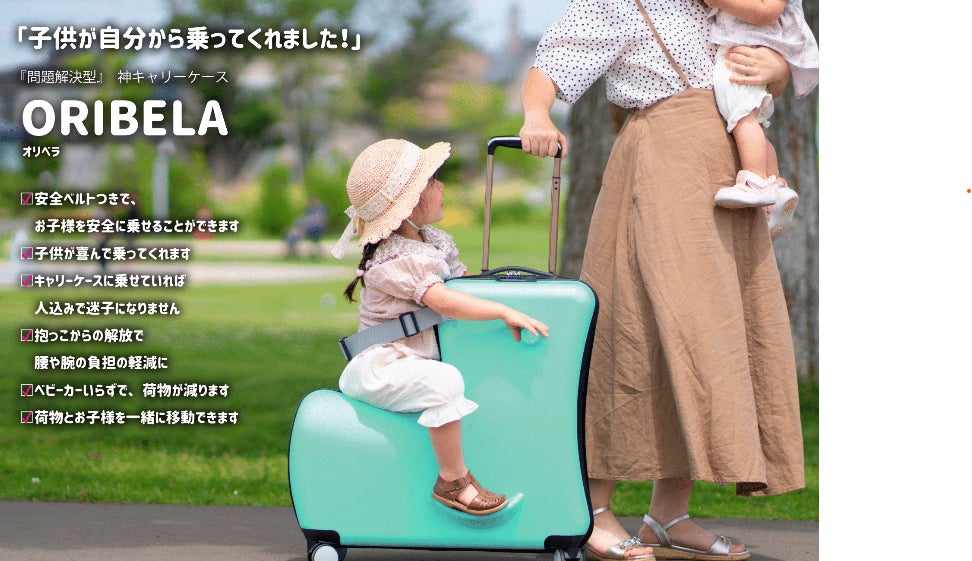 お子様連れの家族旅行でたくさんのご支持を頂いている、子供が乗るキャリーケース「オリベラ」。