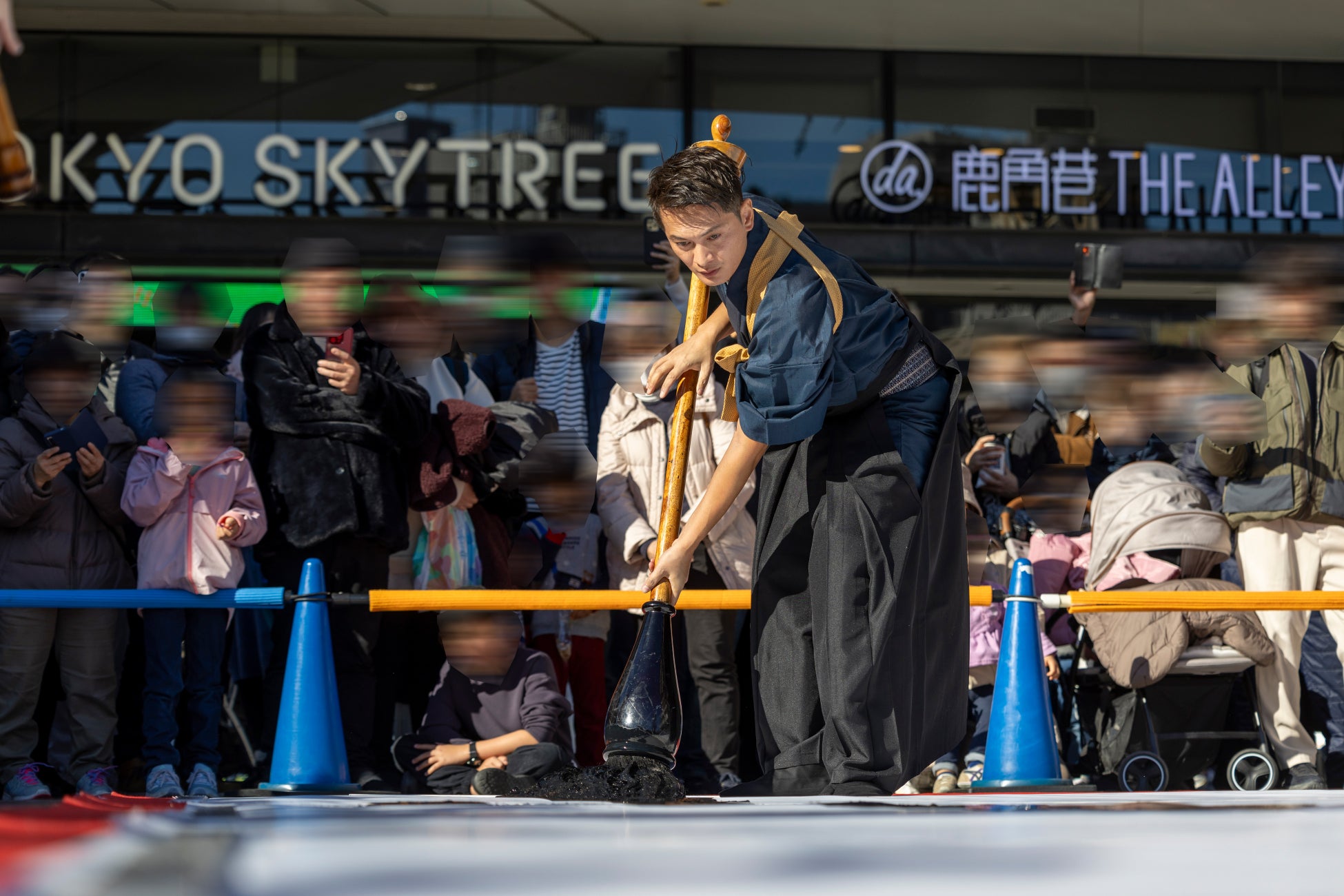 2013年からスタートし、13回目を迎える初空恒例イベント!墨田区出身の書道家である鈴木 猛利氏による書道パフォーマンスを開催します。一年の願いを込めて、巨大な半紙にダイナミックな文字を書き上げます。