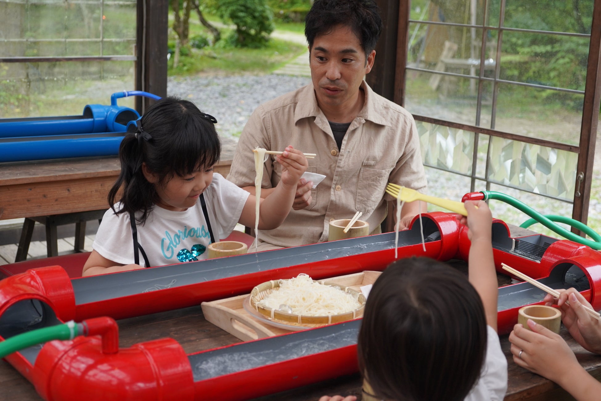 夏、山、川といえば『流しそうめん』ですよね!?スタッフお手製の流しそうめん機械で楽しむ、夏ならではのアクティビティを是非ご体験ください!