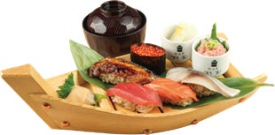 ※写真の盛り合わせ内容は、まぐろ・サーモン・〆さば・うなぎ・軍艦いくらとなります。