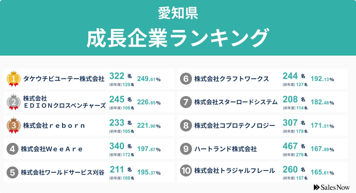 【愛知県】成長企業ランキングTOP50!/SalesNow DBレポート