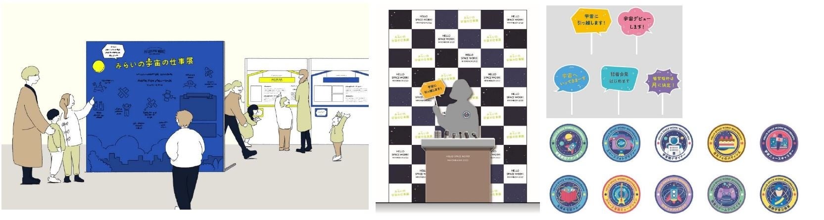 内容:日本橋に拠点を置く企業を中心とした宇宙ビジネス企業が一堂に会し、“宇宙の仕事”をテーマにした子供向けの企画展示を開催。宇宙が身近な存在であることを感じてもらい、将来自分も宇宙ビジネス企業で働いてみたいと思えるような仕掛けで宇宙の仕事を紹介します。宇宙で働く人になりきって記念撮影できる「なりきり記者会見フォトブース」の設置や、お越しいただいた先着2,000名のお子様限定にオリジナルワッペンのプレゼントも実施します。