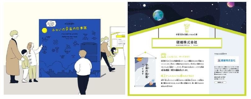 “宇宙生活を快適にする高機能肌着メーカー”や“宇宙農業実験”、“地球観測データ”など12社のユニークな宇宙のお仕事を展示