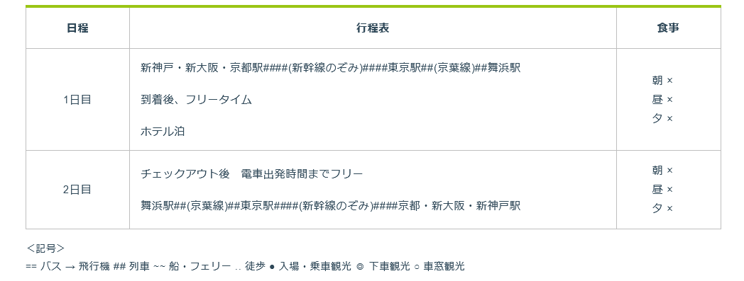 こちらのコースは新大阪~舞浜までのきっぷが付いております。JR舞浜駅よりディズニーリゾート🄬のモノレール料金は含まれておりません。京都、新神戸のプランも設定が可能です。グリーン車のお手配も可能です。