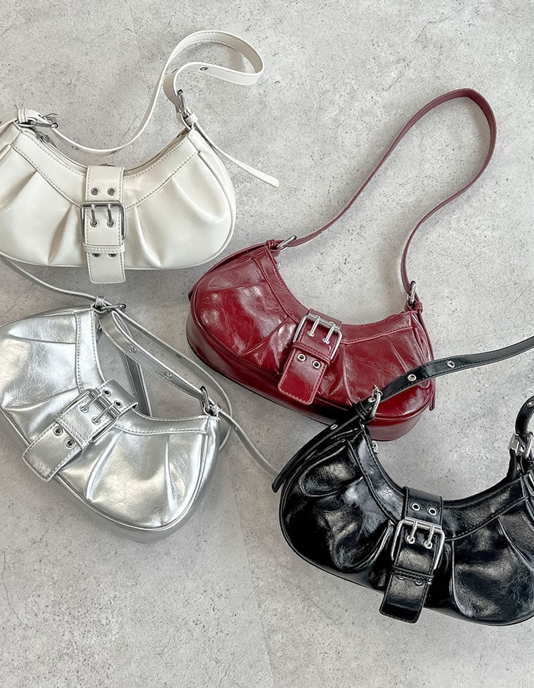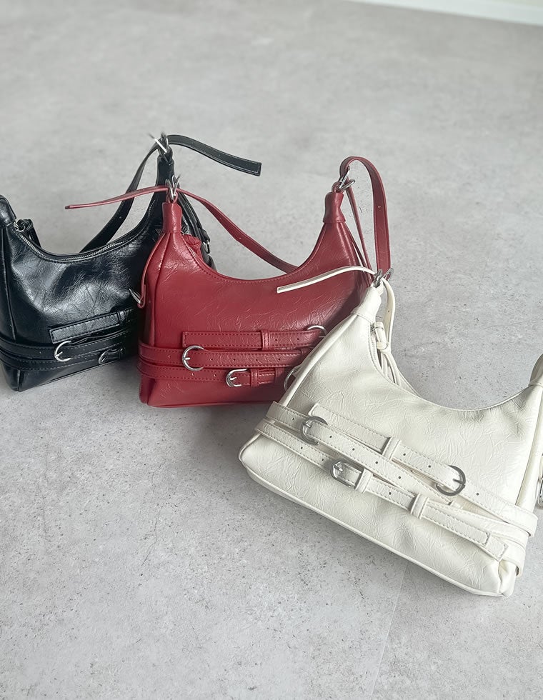 立体的なフォルムとベルトデザインがモードなワンハンドルバッグ。